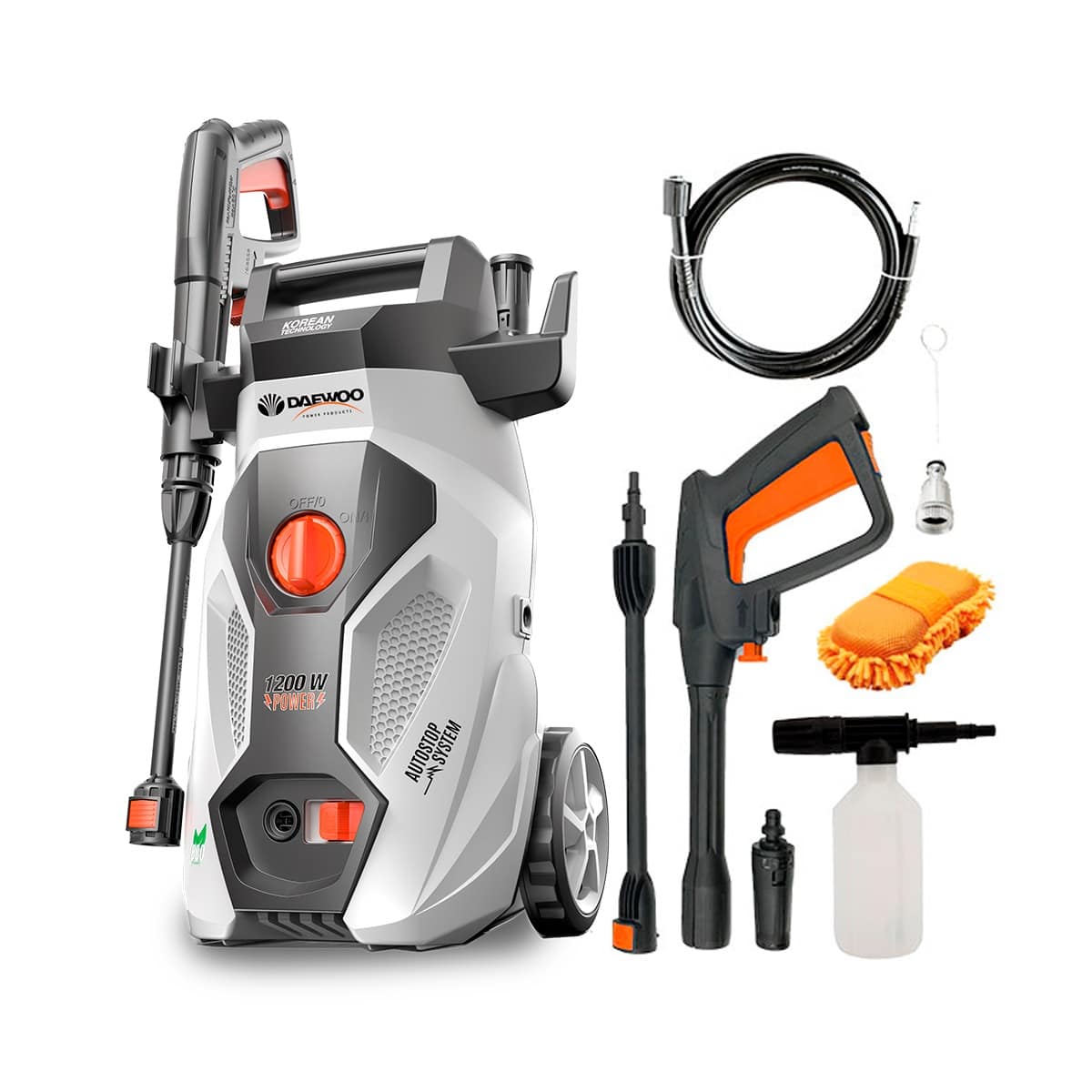 La DAX1130 también cuenta con un sistema de encendido AUTO-STOP, lo que significa que la hidrolavadora se encenderá o apagará de manera automática al accionar el gatillo de la lanza, lo que ahorra energía y mejora la vida útil de la máquina. Incluye características adicionales como un depósito para shampoo, una esponja de microfibra, una lanza de abanico ajustable y un filtro de entrada.